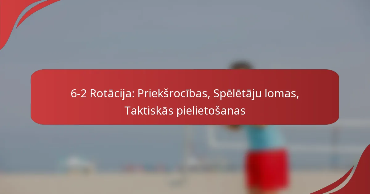 6-2 rotācija ietver sešus spēlētājus laukumā, no kuriem divi ir noteikti kā uzstādītāji, radot atšķirīgas lomas sargiem, uzbrucējiem un centru spēlētājiem. Katram pozīcijai ir specifiskas atbildības, kas veicina gan uzbrukuma, gan aizsardzības stratēģijas, ļaujot nodrošināt taktisku elastību un efektīvu spēli.