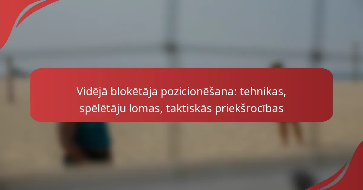 Vidējā bloķētāja pozicionēšana balstās uz efektīvu kāju darbu, precīzu laiku un spēju lasīt pretinieku komandas spēles. Šo tehniku apgūšana uzlabo spēlētāja spēju bloķēt uzbrukumus un veicināt komandas aizsardzību.