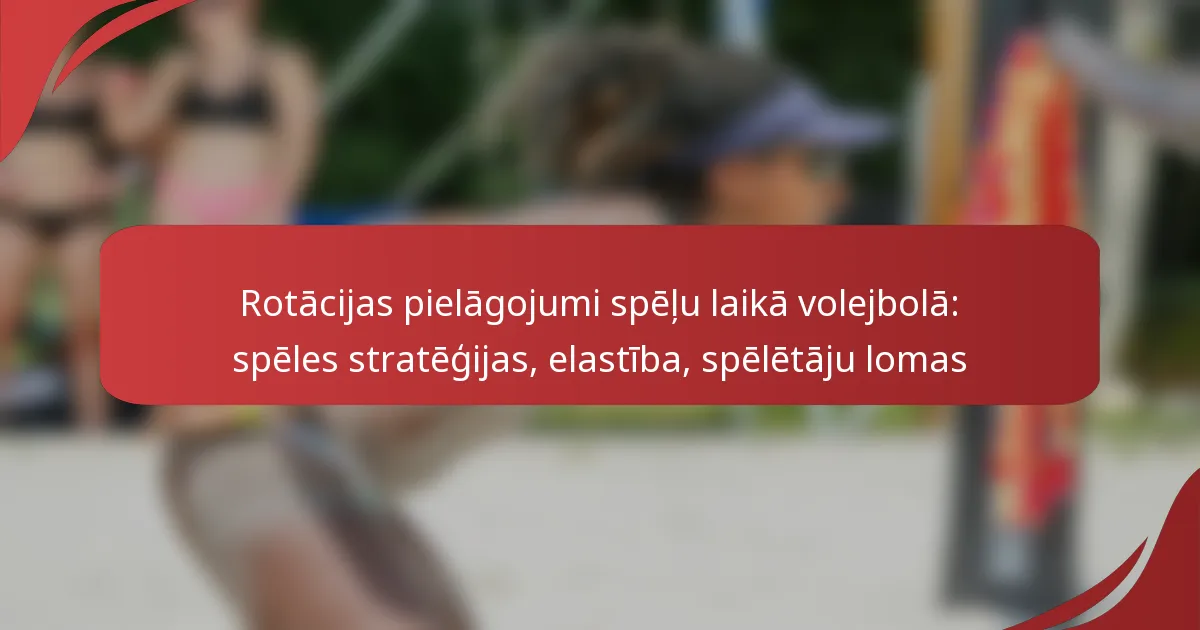 Rotācijas pielāgojumi volejbolā ir būtiski, lai uzlabotu komandas sniegumu, stratēģiski mainot spēlētāju pozīcijas spēles laikā. Šie pielāgojumi ļauj komandām pielāgoties pretinieku stiprajām un vājajām pusēm, nodrošinot optimālu laukuma segumu un punktu gūšanas iespējas. Efektīva komunikācija un elastība spēlētāju lomās spēlē kritisku lomu, veiksmīgi īstenojot šīs spēles stratēģijas.