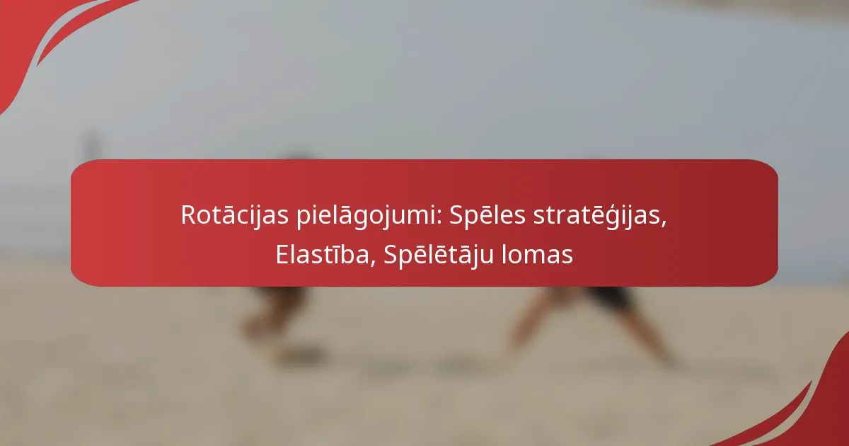 Rotācijas pielāgojumi spēlēs ir būtiskas stratēģijas, kas ietver spēlētāju pozīciju un lomu maiņu spēles laikā, lai uzlabotu komandas sniegumu. Izmantojot šos pielāgojumus, komandas var palikt elastīgas un reaģēt uz dinamisko spēles dabu, efektīvi pretoties pretiniekiem un pielāgoties mainīgajām situācijām.