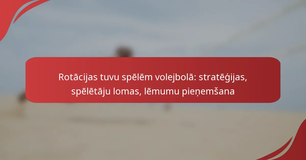 Tuvojoties volejbola spēlēm, efektīvas rotācijas stratēģijas ir būtiskas, lai maksimizētu komandas stiprās puses un minimizētu vājās. Katram spēlētājam ir specifiska loma, kas veicina gan uzbrukuma, gan aizsardzības taktiku, tādēļ komandām ir svarīgi saprast šīs dinamikas. Stratēģiskā lēmumu pieņemšana, balstoties uz reāllaika novērojumiem un spēlētāju sniegumu, ļauj treneriem un spēlētājiem pielāgot savas rotācijas un palielināt panākumu iespējas.