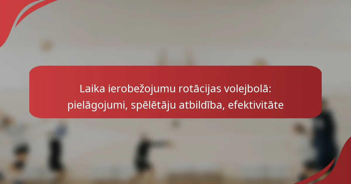 Laika pārtraukumi volejbolā ir būtiski, lai optimizētu komandas sniegumu un pārvaldītu spēlētāju nogurumu spēles laikā. Šie stratēģiskie pielāgojumi ļauj treneriem reorganizēt spēlētāju pozīcijas un apspriest spēles stratēģijas, kamēr spēlētāji uzņemas specifiskas atbildības, lai uzlabotu komunikāciju un atbalstu. Efektīvi izmantojot laika pārtraukumus, komandas var risināt tūlītējas problēmas un uzlabot savu kopējo efektivitāti laukumā.